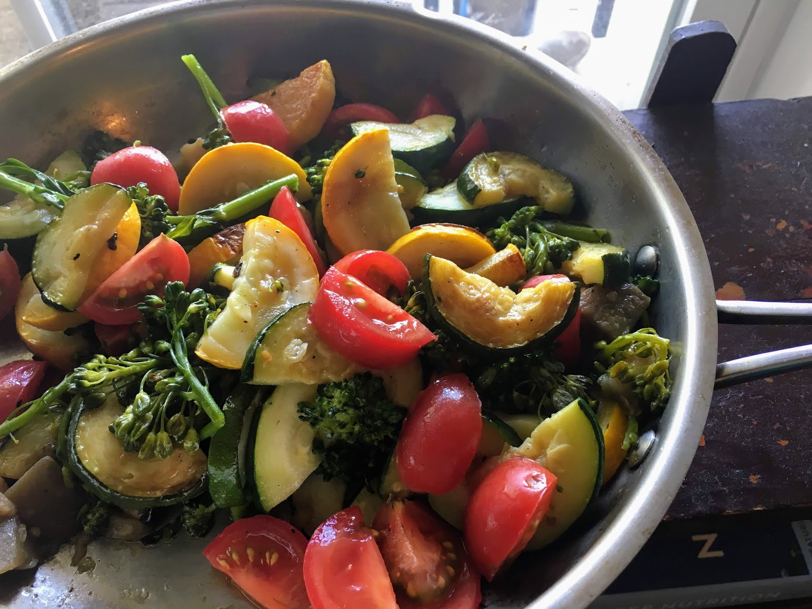 A typical day for me looks like this. I wake between 6-7. I sometimes start with just water, and then sit outside in the warmer months and spend time reading the Bible and praying. That’s when I can get up before my kids. If not, I jump right into serving them breakfast, doing hair, helping find clothes, etc. I may heat up a cup of chicken broth and drink it out of a mug. Other times I wait until the kids’ needs are met, and then saute some veggies, add broth, and poach a couple of eggs in it. Similar to this post and this one. By that point it’s around 7:30 or 8 when I eat breakfast. Soup for breakfast may seem strange, but it fills me up and makes me feel good. When I had been eating granola or cereal years ago, I was always hungry by 9:30. Eating carbs and sugar makes me feel heavy then hungry all day, with little energy.
