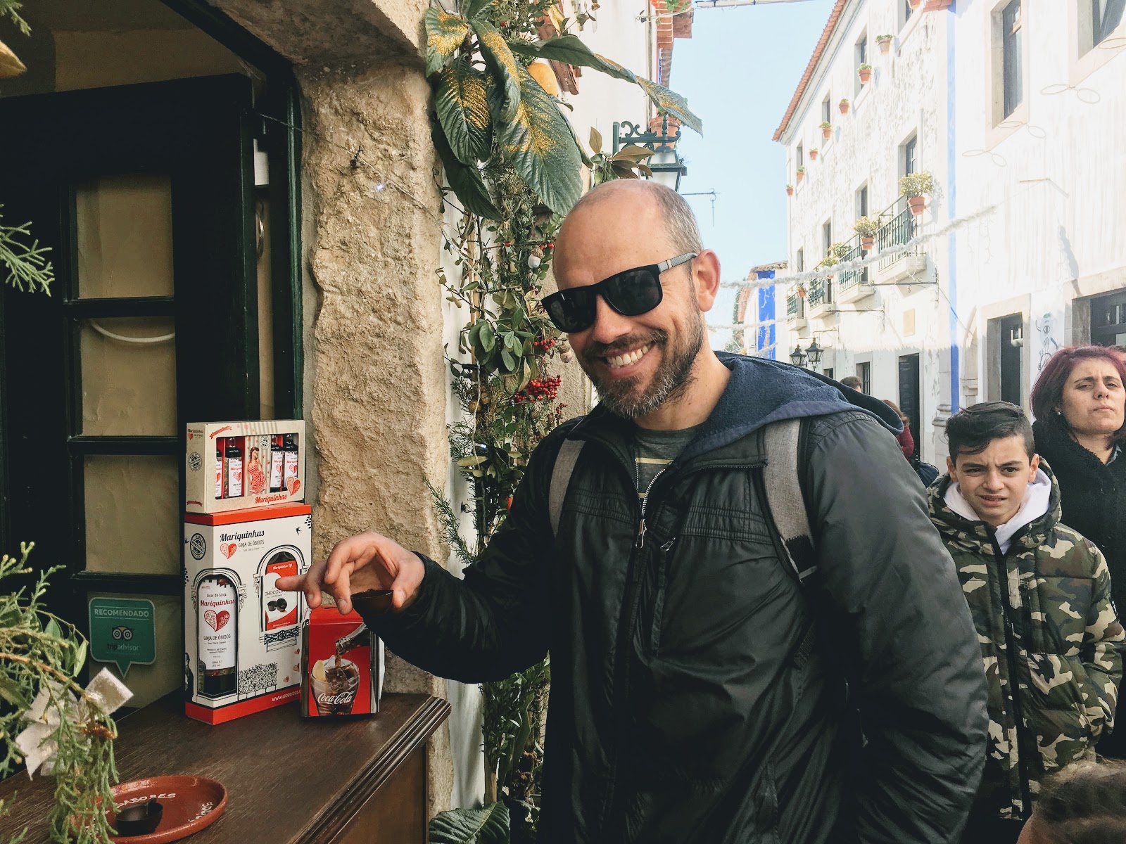 | Justin and his shot of cherry liqueur in a chocolate cup |
