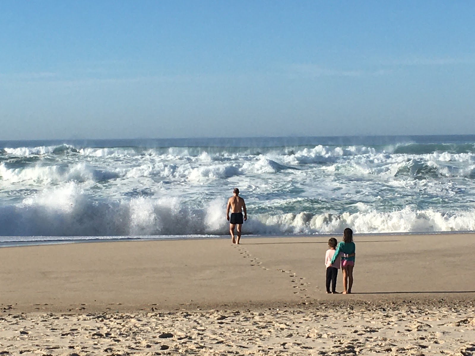 Justin couldn’t wait to go in. After running from the waves for a while with the girls (Lydia getting washed in to shore at one point), Justin set off toward the waves, with his kids looking on. It wasn’t quite as dramatic as the picture lays it out to be, but it shows what happens wherever we travel: Justin takes the plunge while his family looks on. Sometimes we join in, but typically only when warm enough.