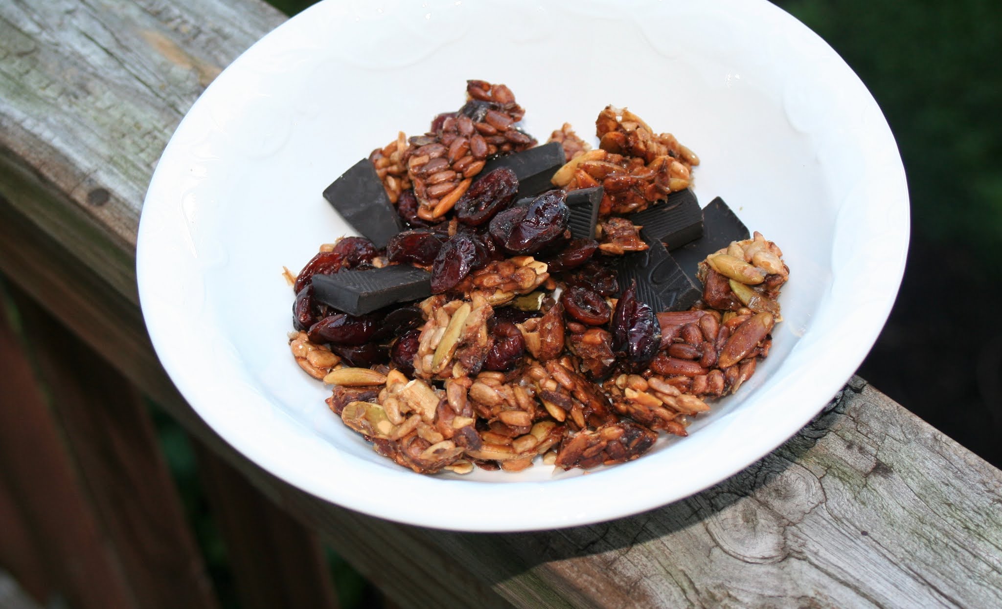 This snack mix is great on it’s own, with cheese, on a salad or broken up into pieces with cranberries and dark chocolate. My favorite part about it is that there is no sugar. It’s hard to come by satisfying snacks that are sugar free and not heavy on carbs. A little sugar here and there is fine, and carbs are fine but it can be easy to overdo both. The snack mix is the perfect way to balance out how you eat.
